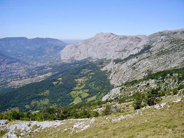Camino hacia el impresionante macizo calizo de Peña Sobia