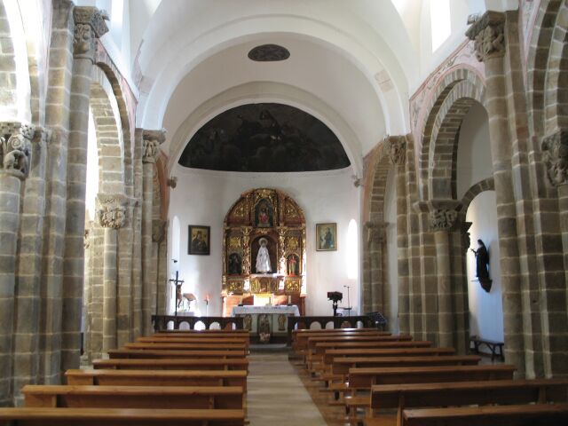 El edificio, de planta basilical conserva de su fábrica románica las tres naves de cuatro tramos donde se distinguen características propias de las diferentes etapas de este estilo artístico. La iglesia pasó por tres momentos constructivos y dos grandes reformas ocurridas en el s. XVII -momento en el que se remodela la fachada- y a principios del s. XX.