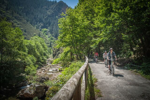Hace ya más de 12 años que en TeverAstur hicieron, del Descenso en bici de la Senda del Oso, su especialidad. Conscientes del desnivel de la ruta y de las necesidades de los usuarios, buscan darles una experiencia 100% de disfrute, sin más preocupación y esfuerzo que dejarse llevar. Alquiler de bicicletas, tandem, remolque para niños, mascotas…