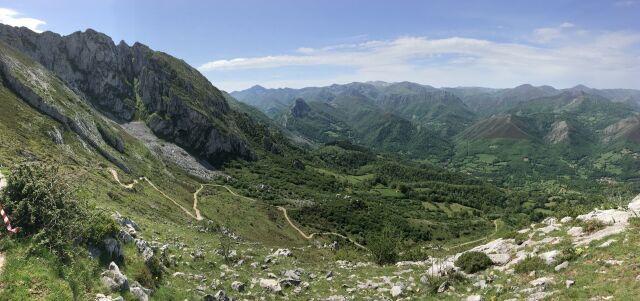 Desde la cumbre se desciente a Vega de Adentro. Siguiendo el sendero llegamos a la Vega de Afuera, salpicada de cabañas y corros. Cruzando esta vega tenemos la opción de acercarnos al mirador que se cuelga sobre las tierras del vecino concejo de Quirós y frente a la Sierra del Aramo. El camino de vuelta pasa de nuevo por la laguna y la pista, pudiendo llegar a Sobrevilla, o de nuevo al pueblo de Carrea, donde iniciamos la ruta.
